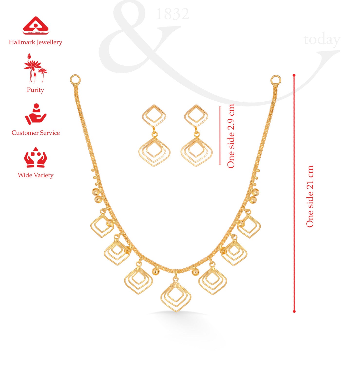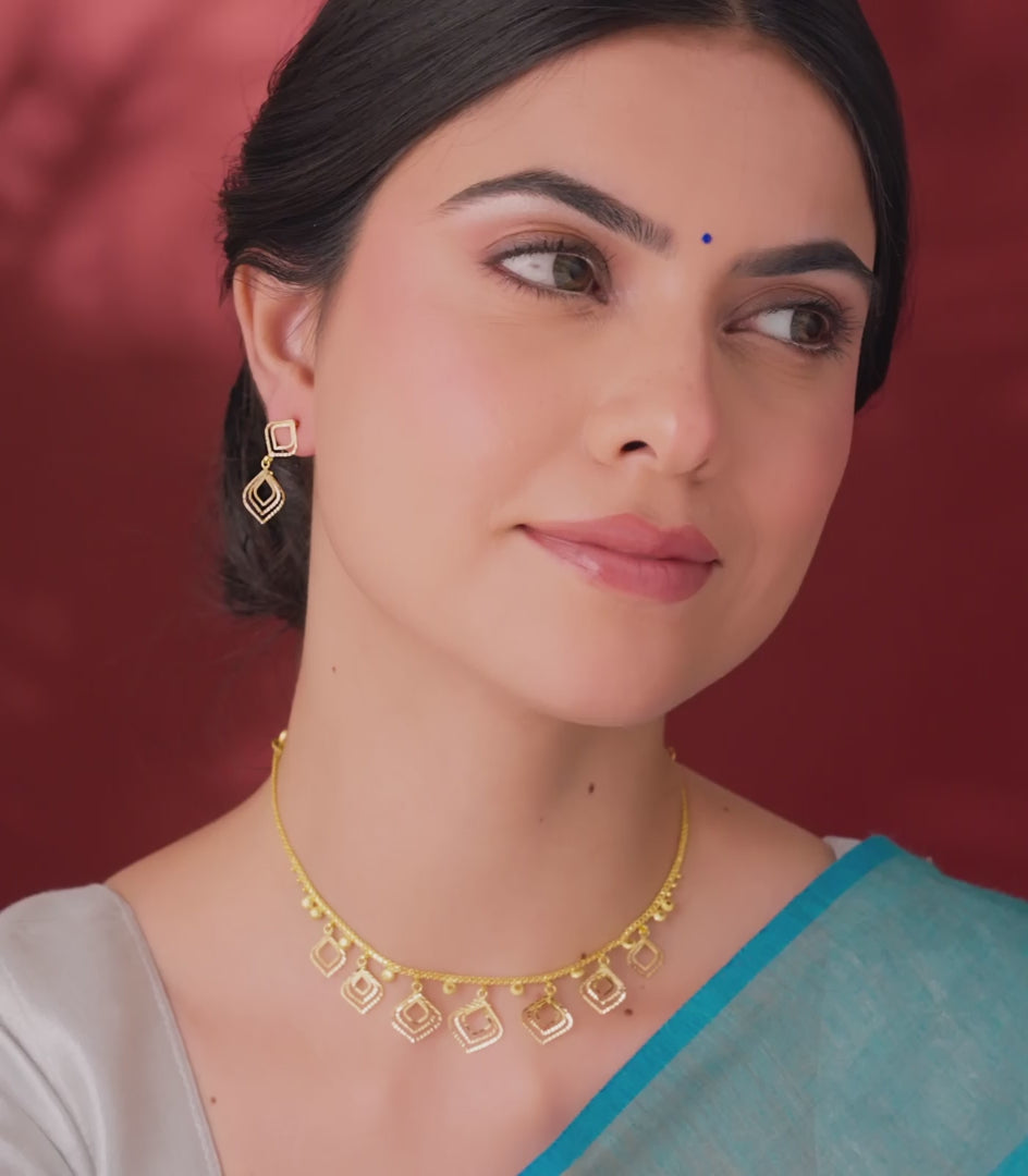 Add a timeless touch of elegance to your jewelry collection with this exquisite 22K gold necklace by P.N. Gadgil & Sons. Inspired by nature’s grace, this designer necklace features intricately crafted leaf motifs, suspended across dual-layered chains, creating a luxurious and feminine look. Perfect for festive occasions, weddings, or gifting, this piece showcases traditional craftsmanship with a modern aesthetic.