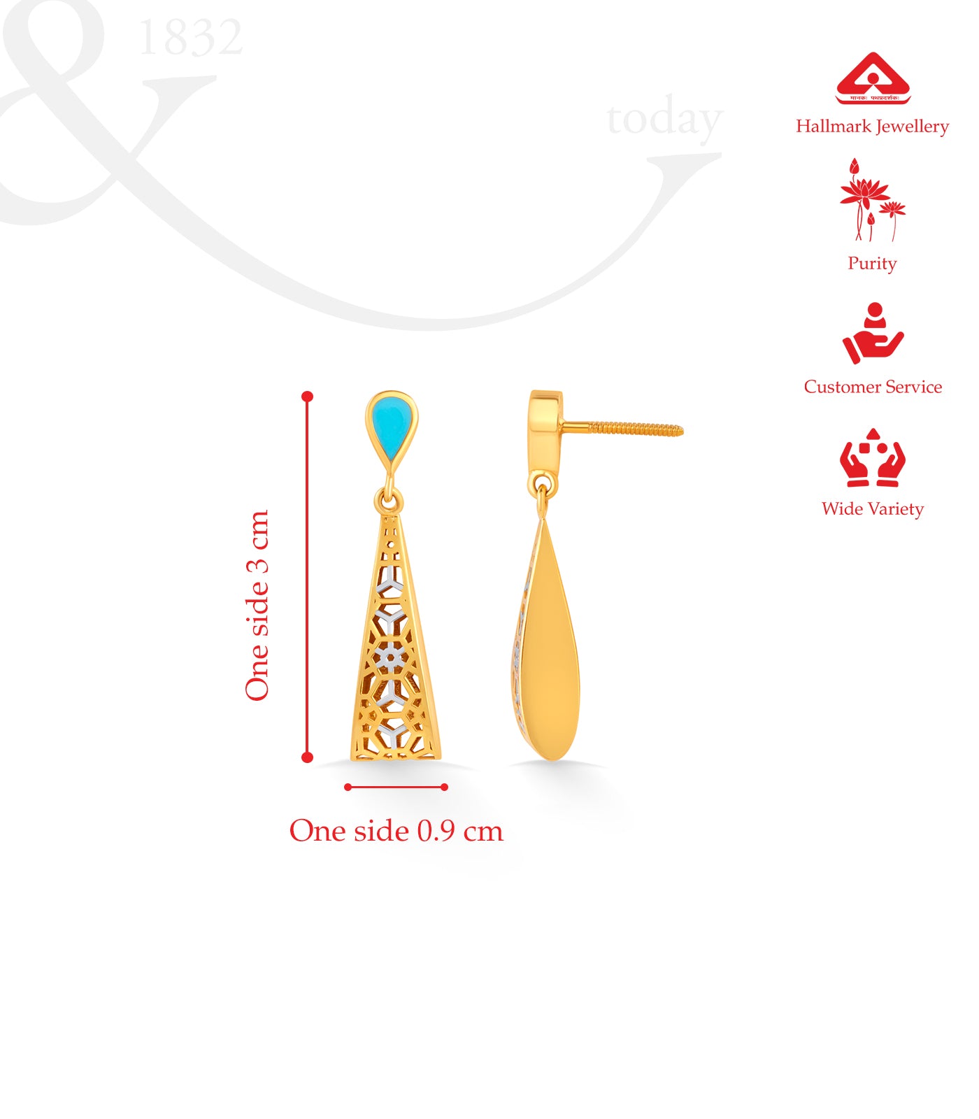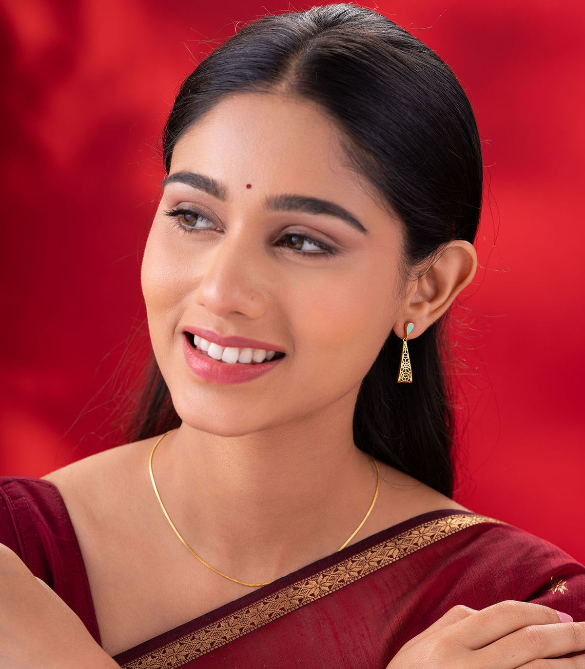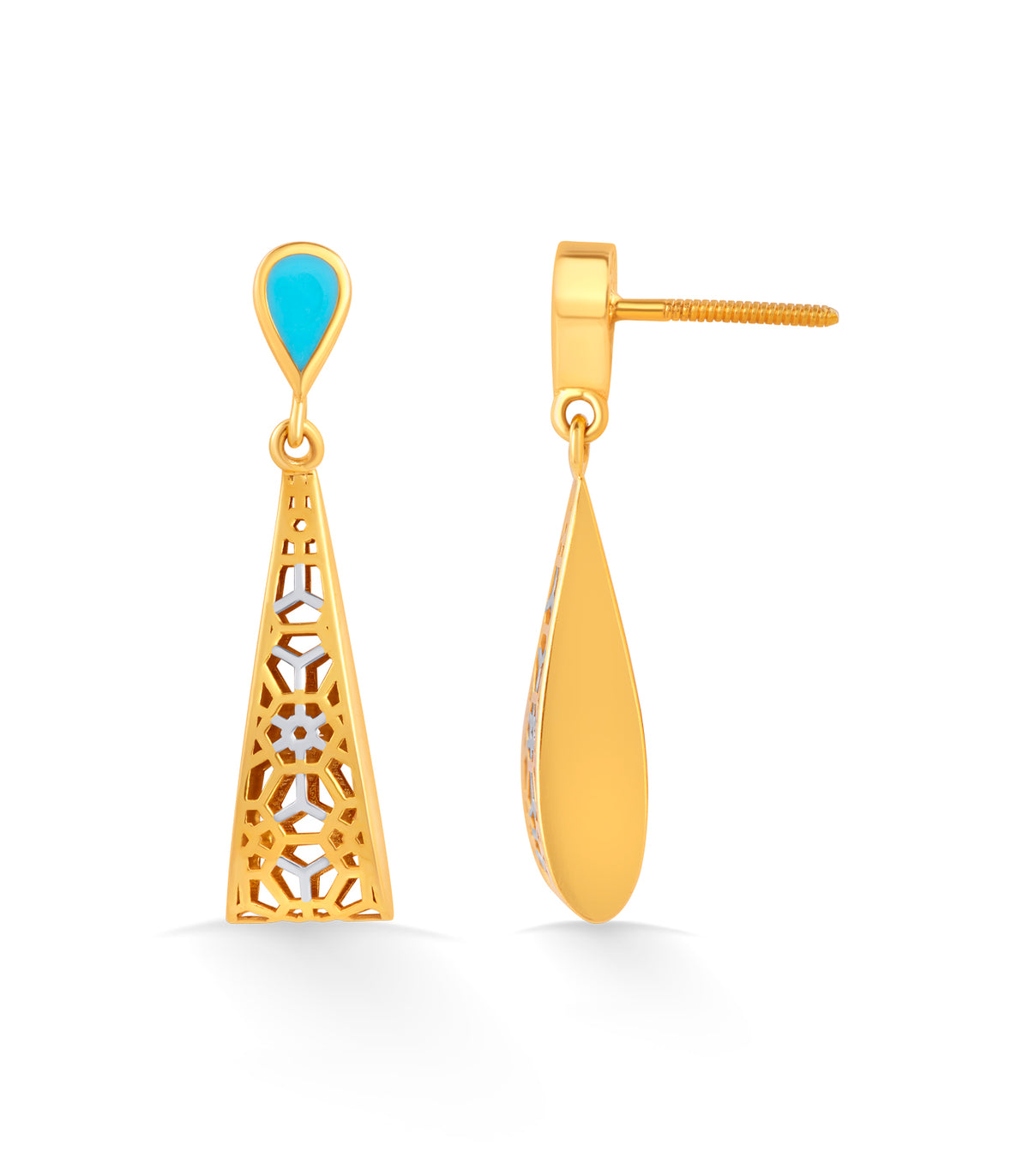 The Azure Lattice Gold Earrings are a masterpiece of artistry and poise. Featuring a serene turquoise teardrop set atop a finely crafted lattice of gold, this design brings together tradition and modernity in perfect balance.