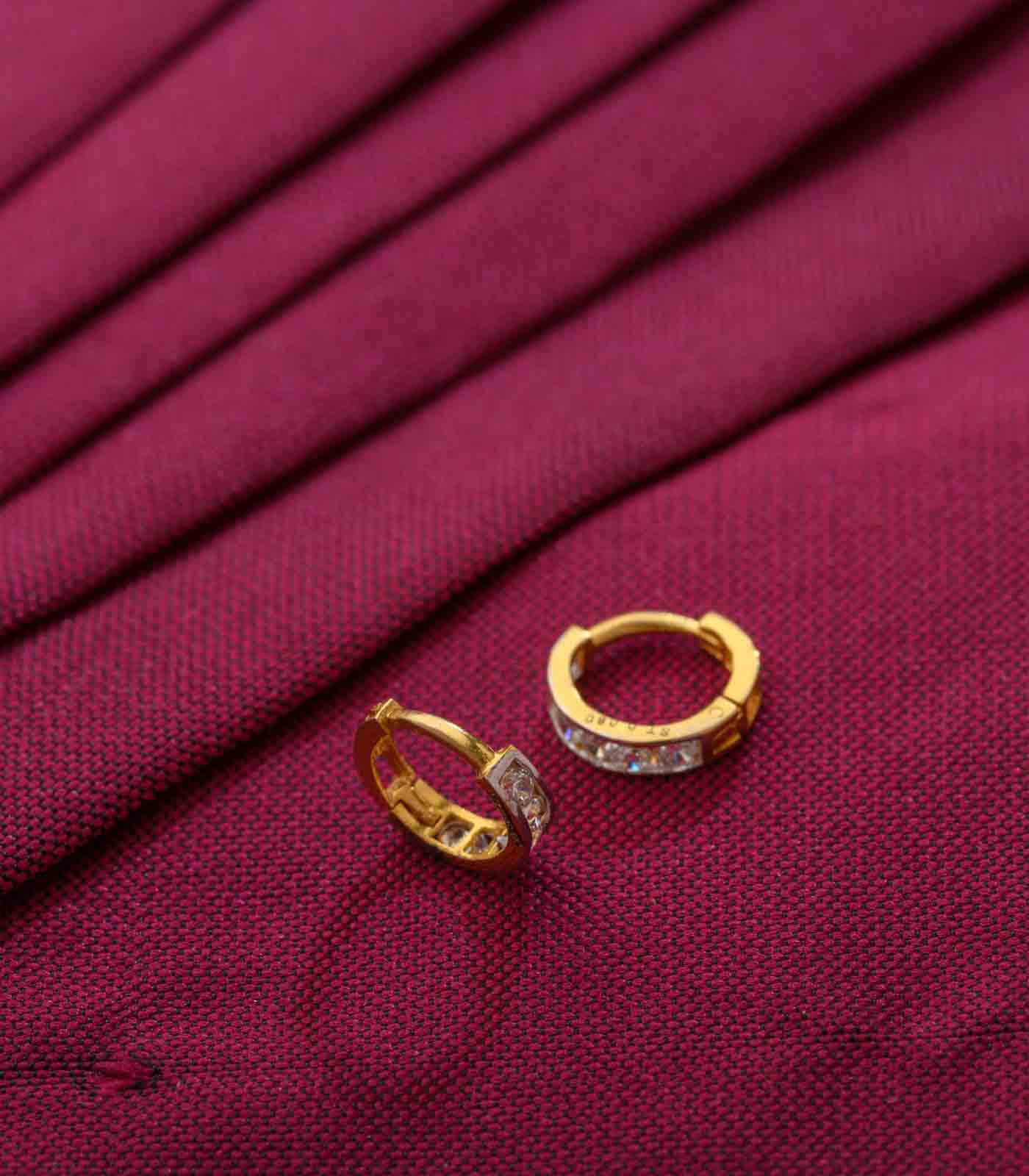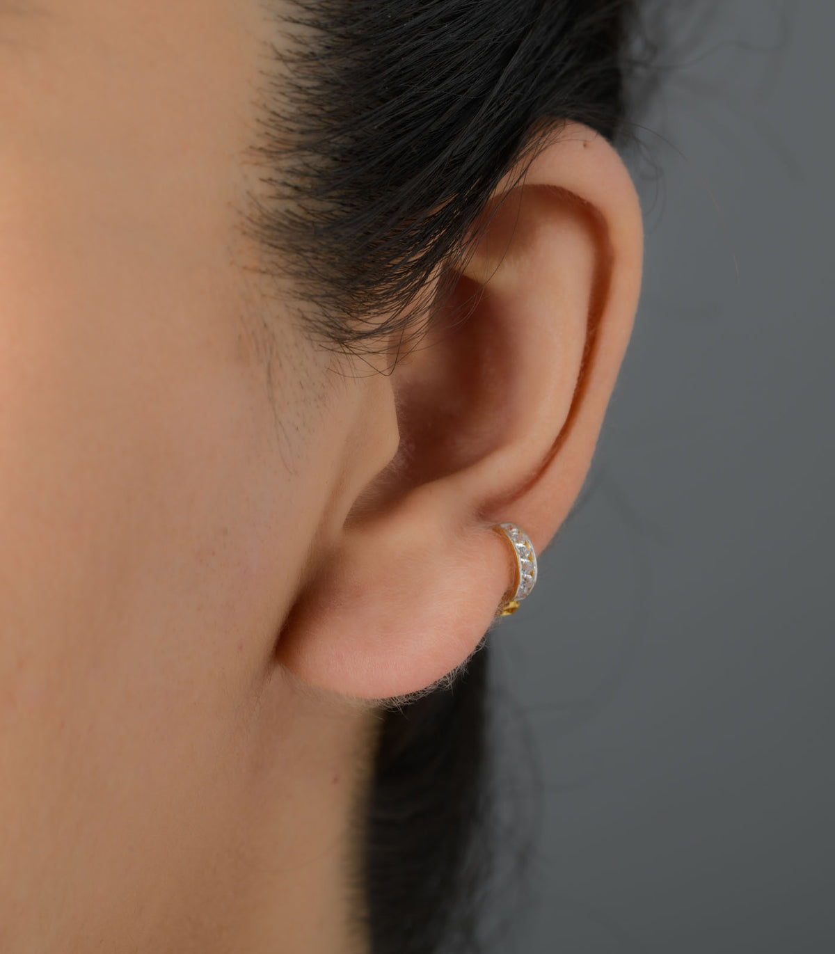 Design: Sleek hoop earrings encrusted with shimmering stones, designed to provide a subtle yet sophisticated sparkle that enhances any look.