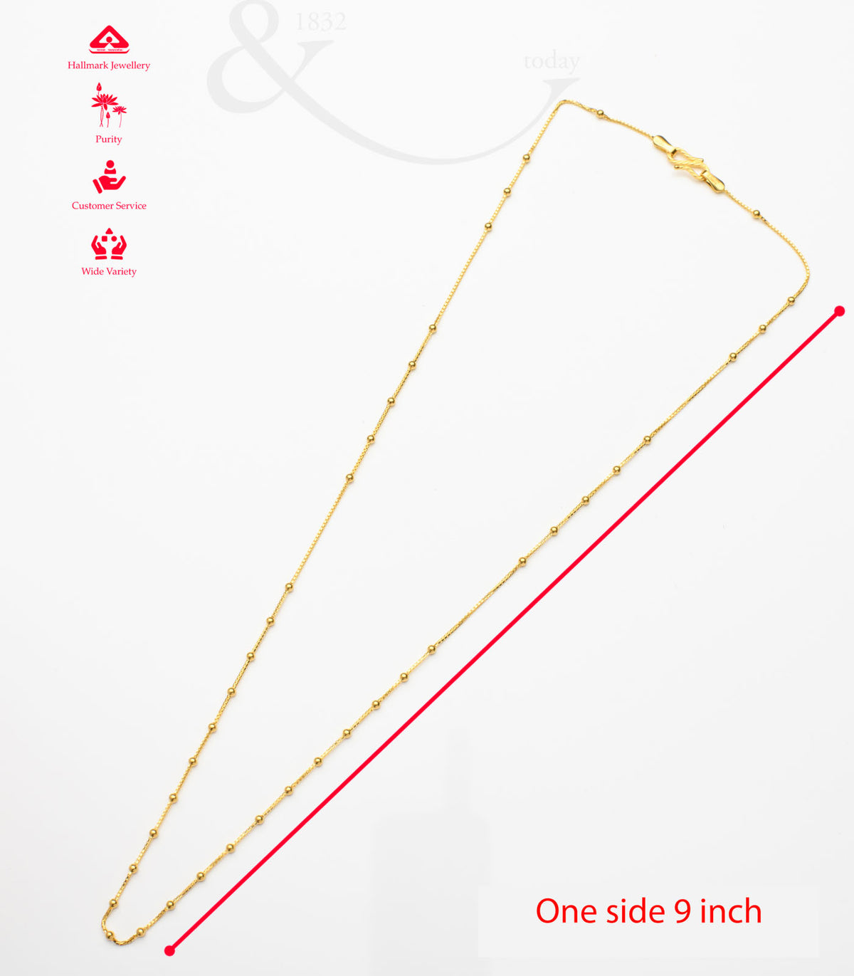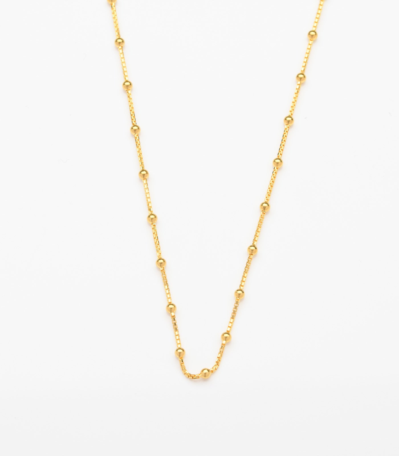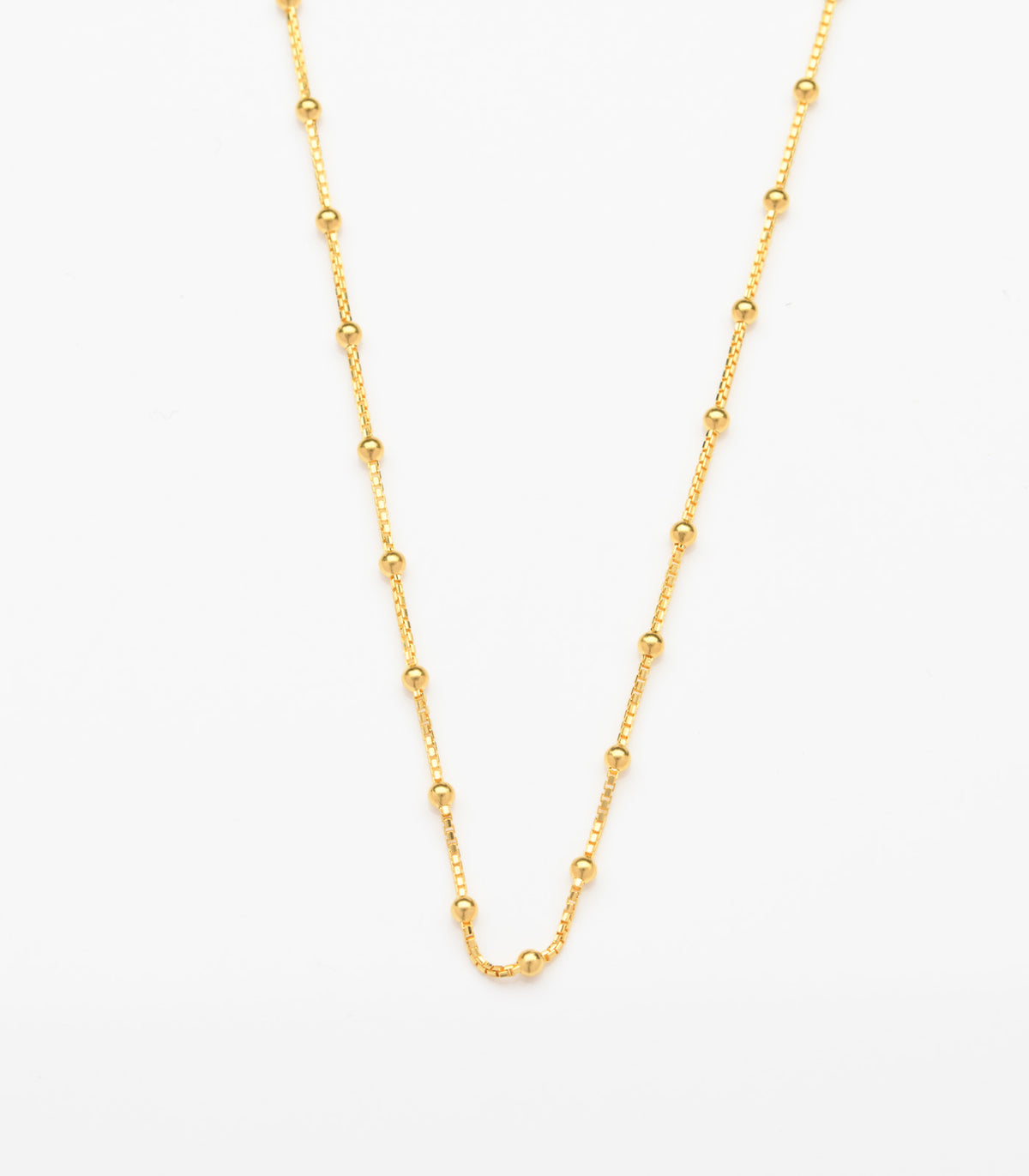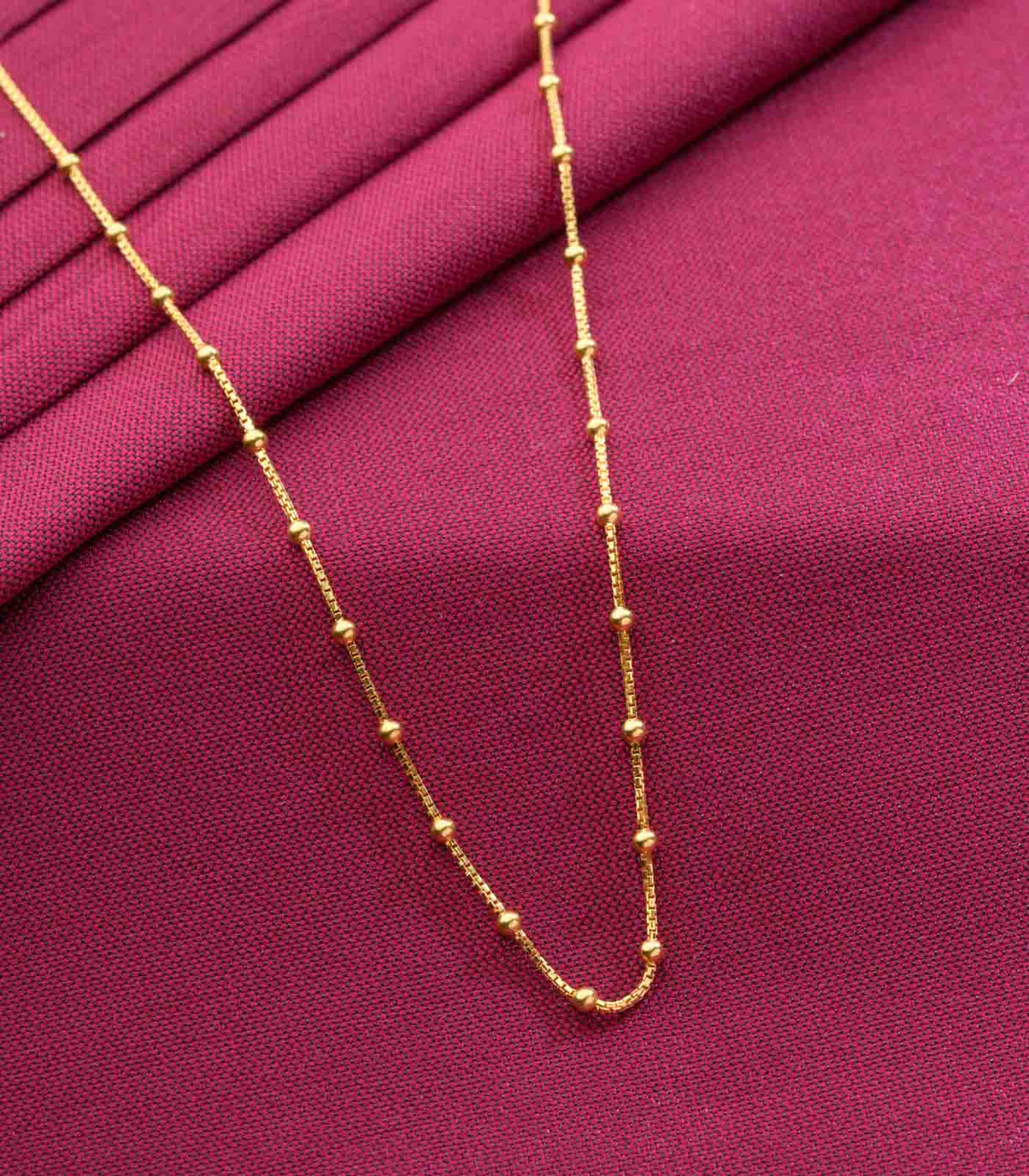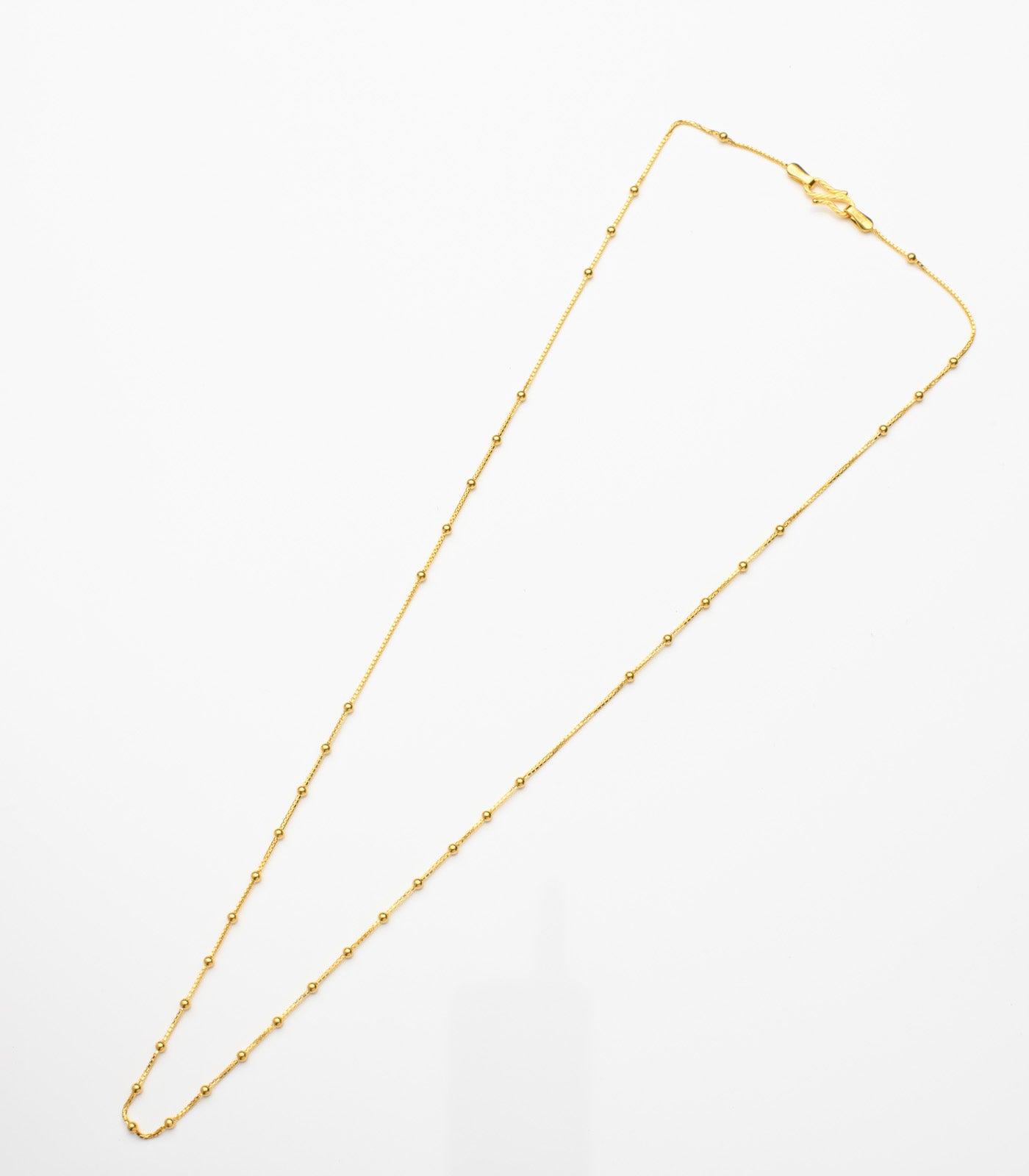 This chain is very minimal and good for office use. I personally like to layer this with a thicker gold chain. It's dainty and 20 inches long - just how I wanted it to be!