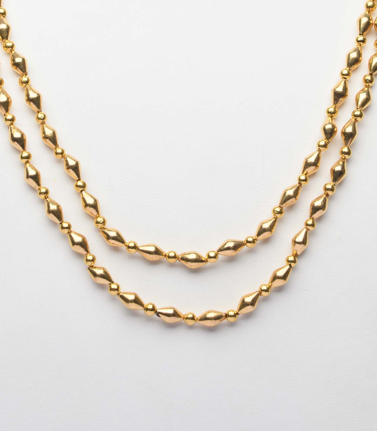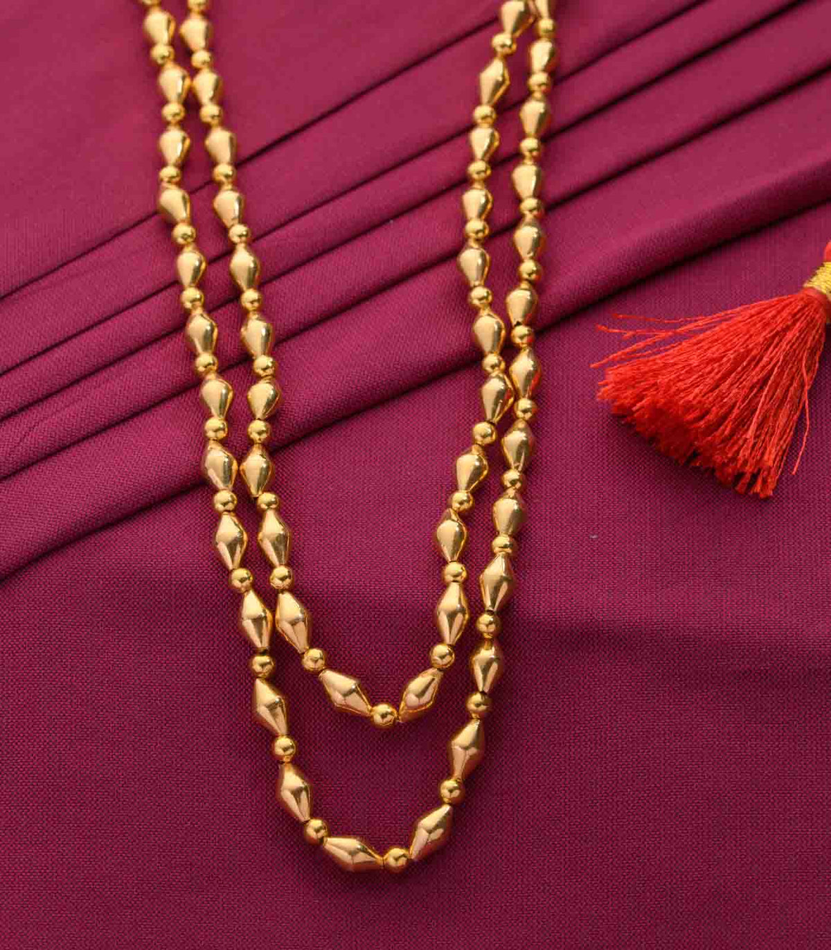 Design: A dual-layered necklace with minimal beaded detailing, offering a graceful balance of tradition and simplicity.