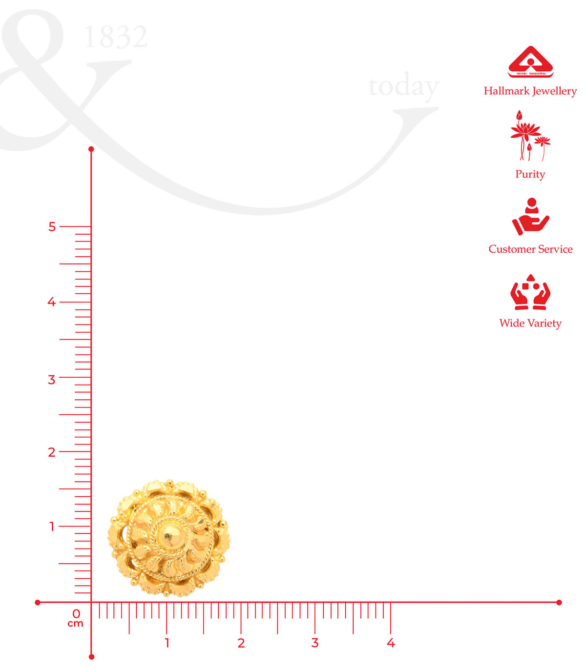 Radiant Gold Tops crafted in 22K gold exude timeless charm with their intricate floral-inspired design. The detailed pattern adds a traditional yet elegant touch, making these tops a perfect choice for both everyday wear and festive occasions.