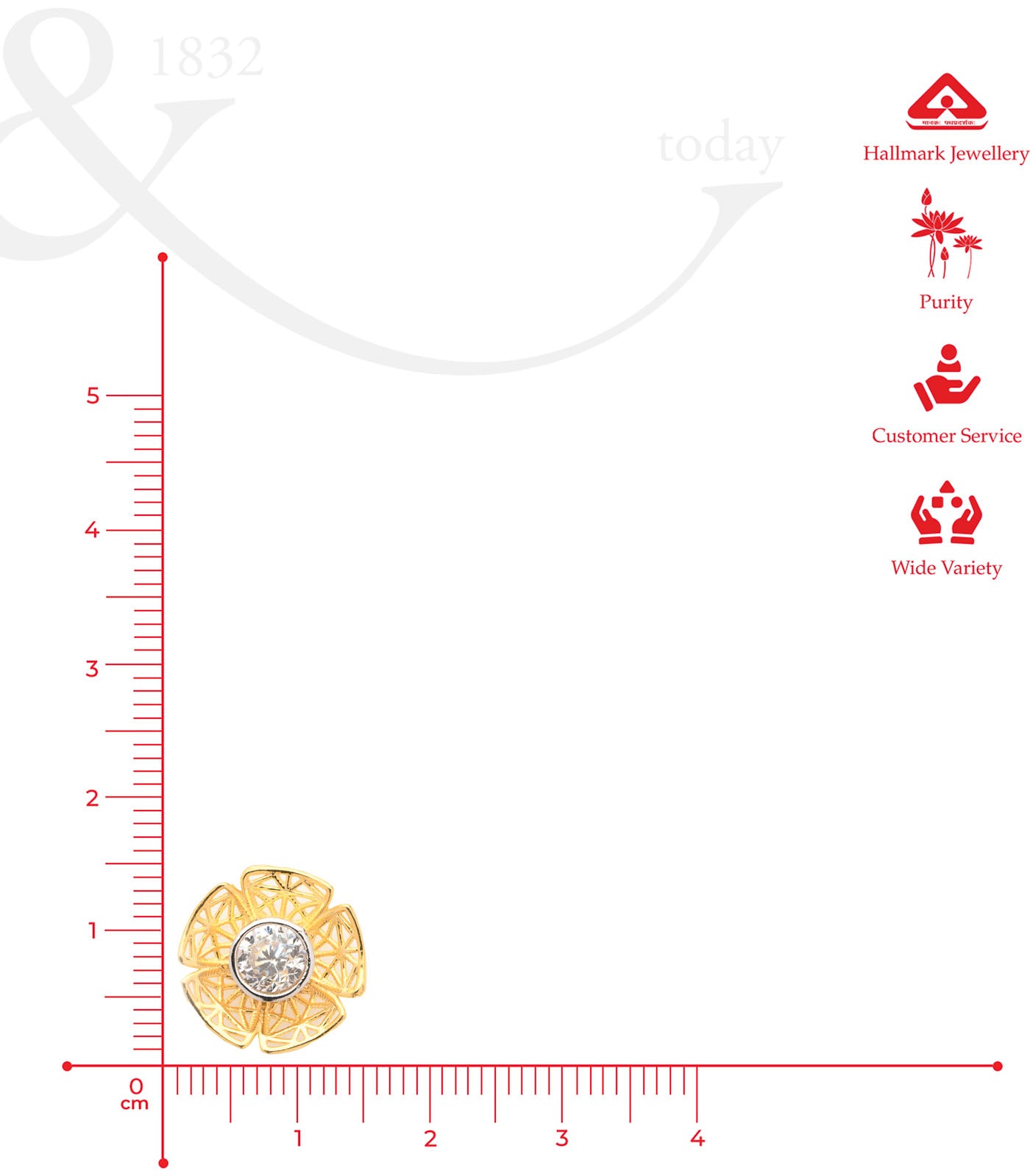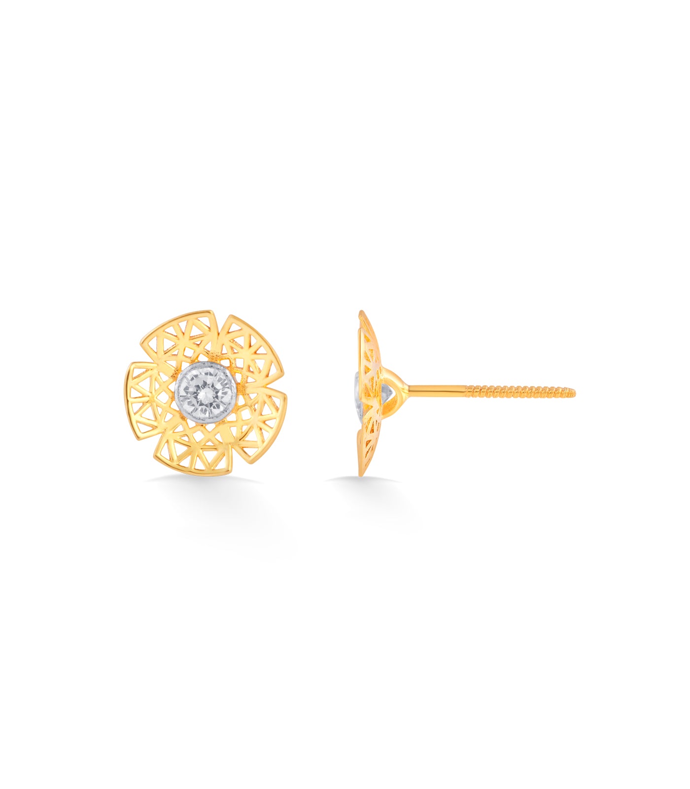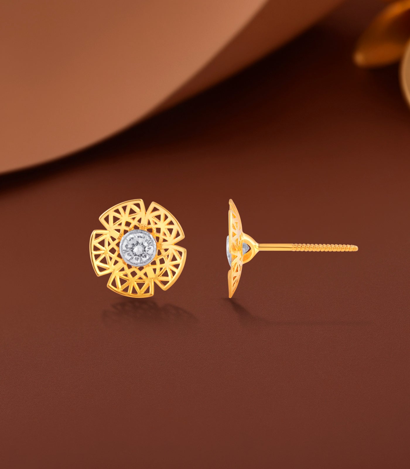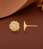 Round Single Stone Tops by P.N. Gadgil & Sons are crafted in 18K gold with a beautifully intricate cutwork design and a brilliant round stone at the center. Lightweight yet striking, these tops bring a perfect balance of minimalism and sparkle, making them ideal for daily wear as well as special occasions.