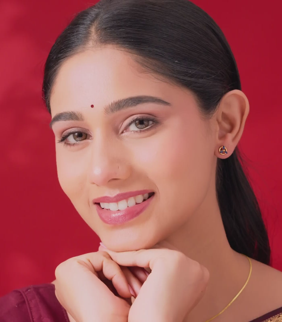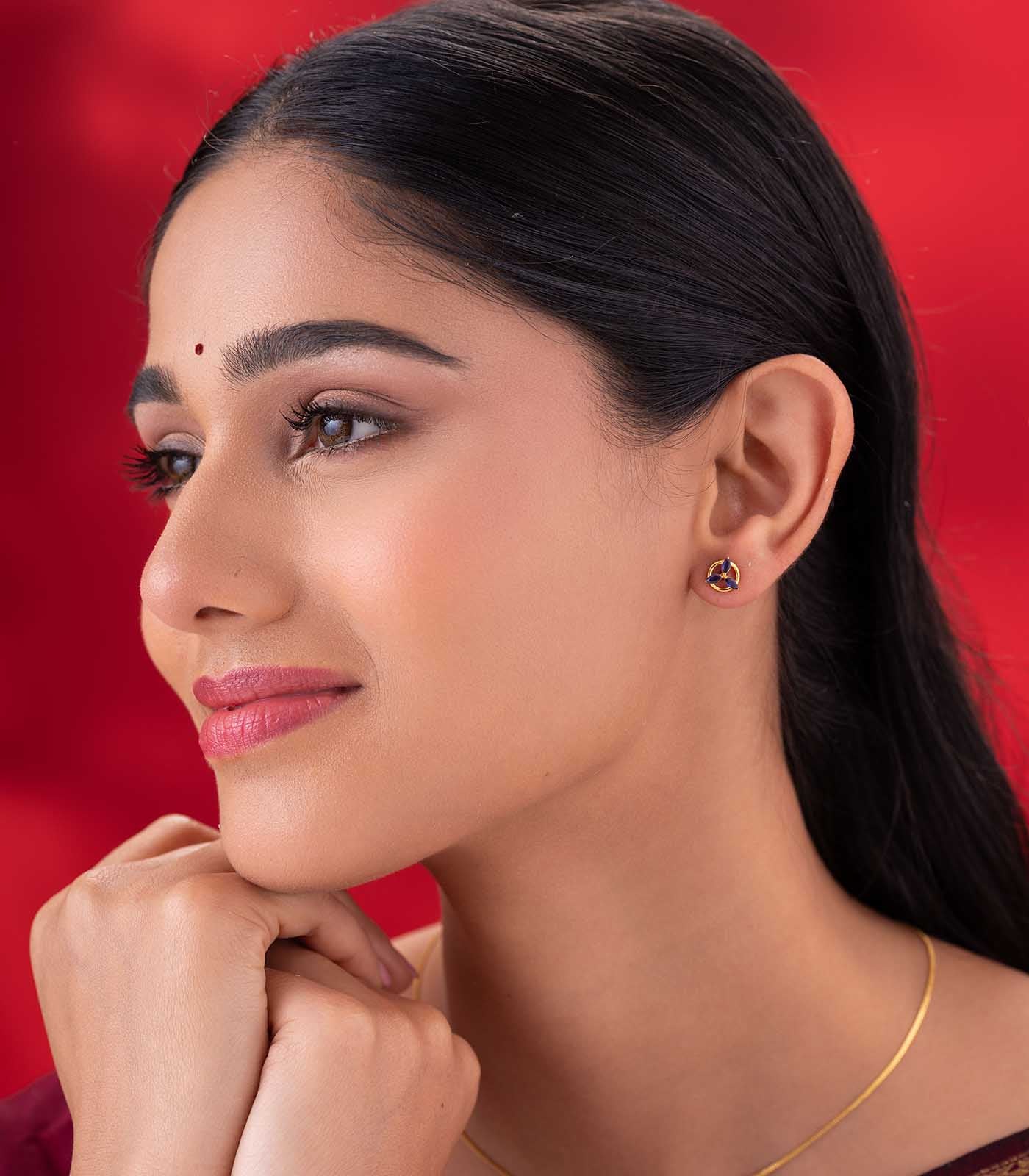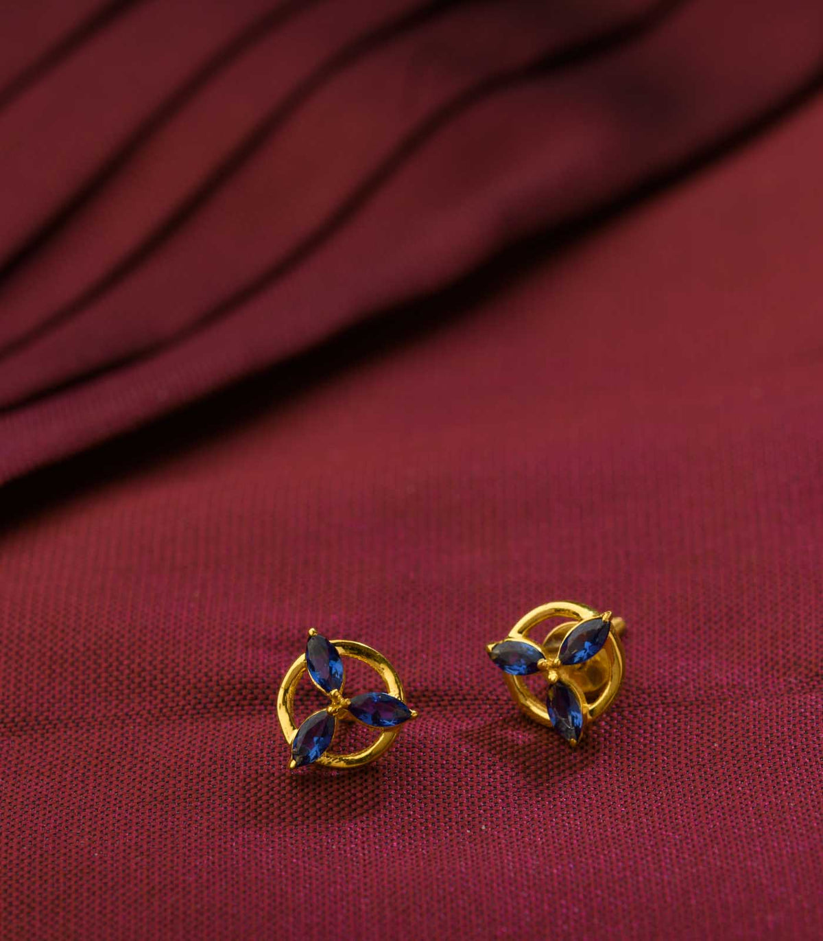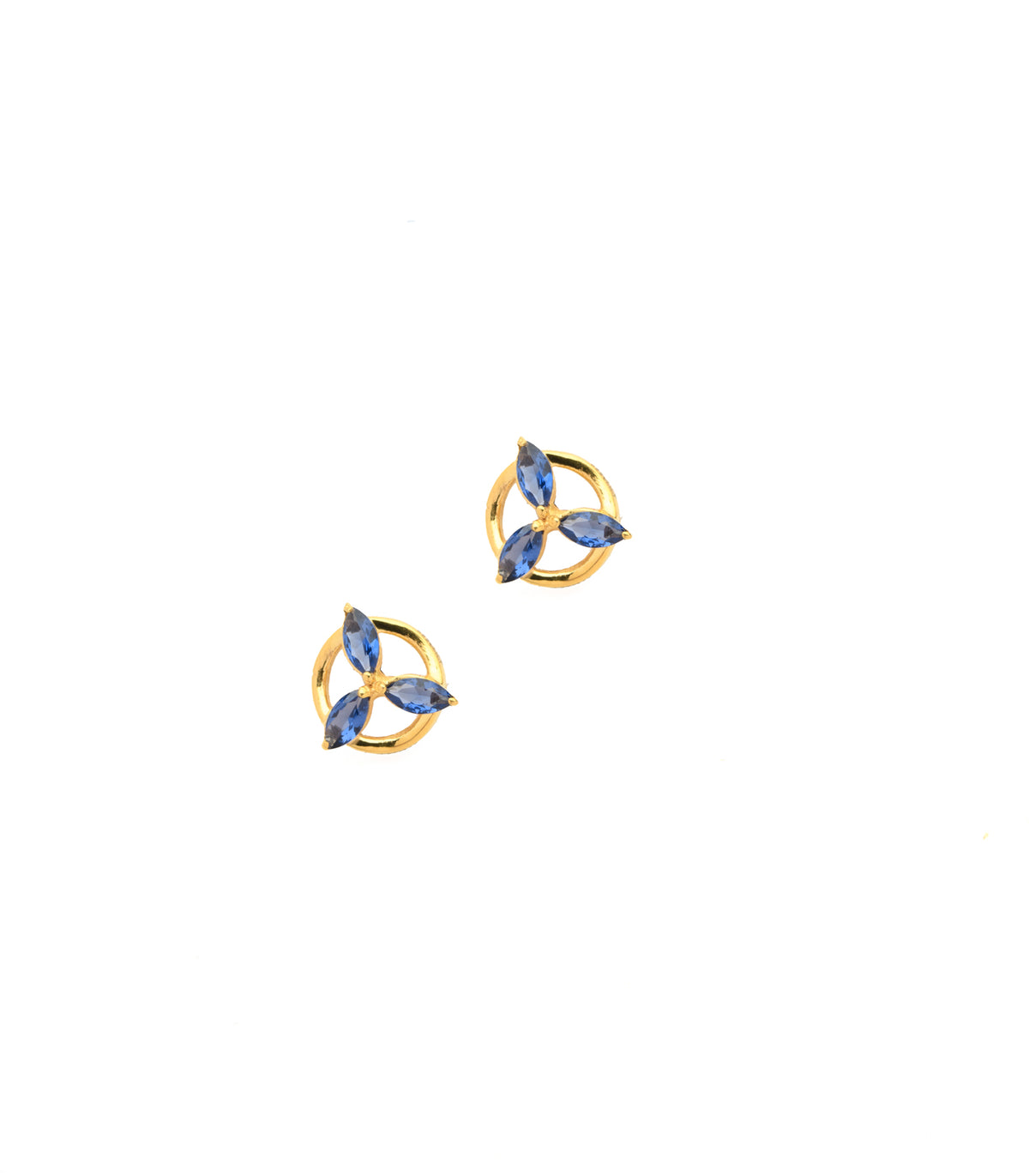 Material: Crafted with 22k gold featuring three deep blue gemstones arranged in a circular design.