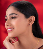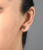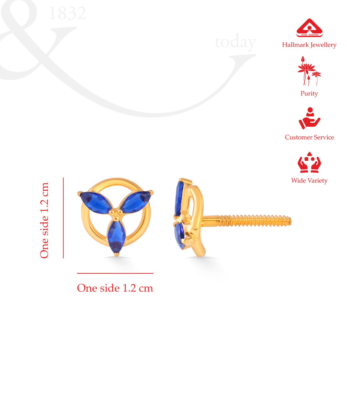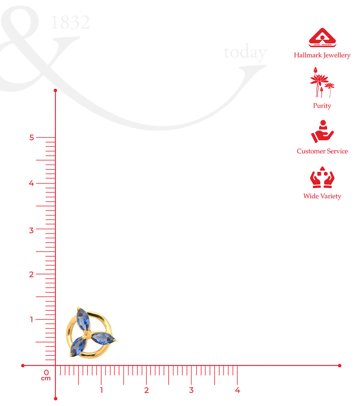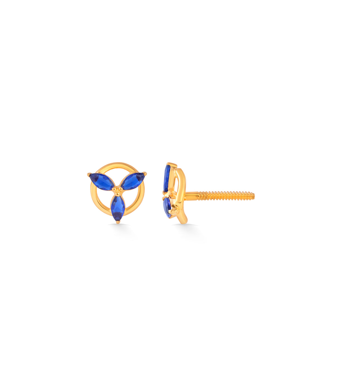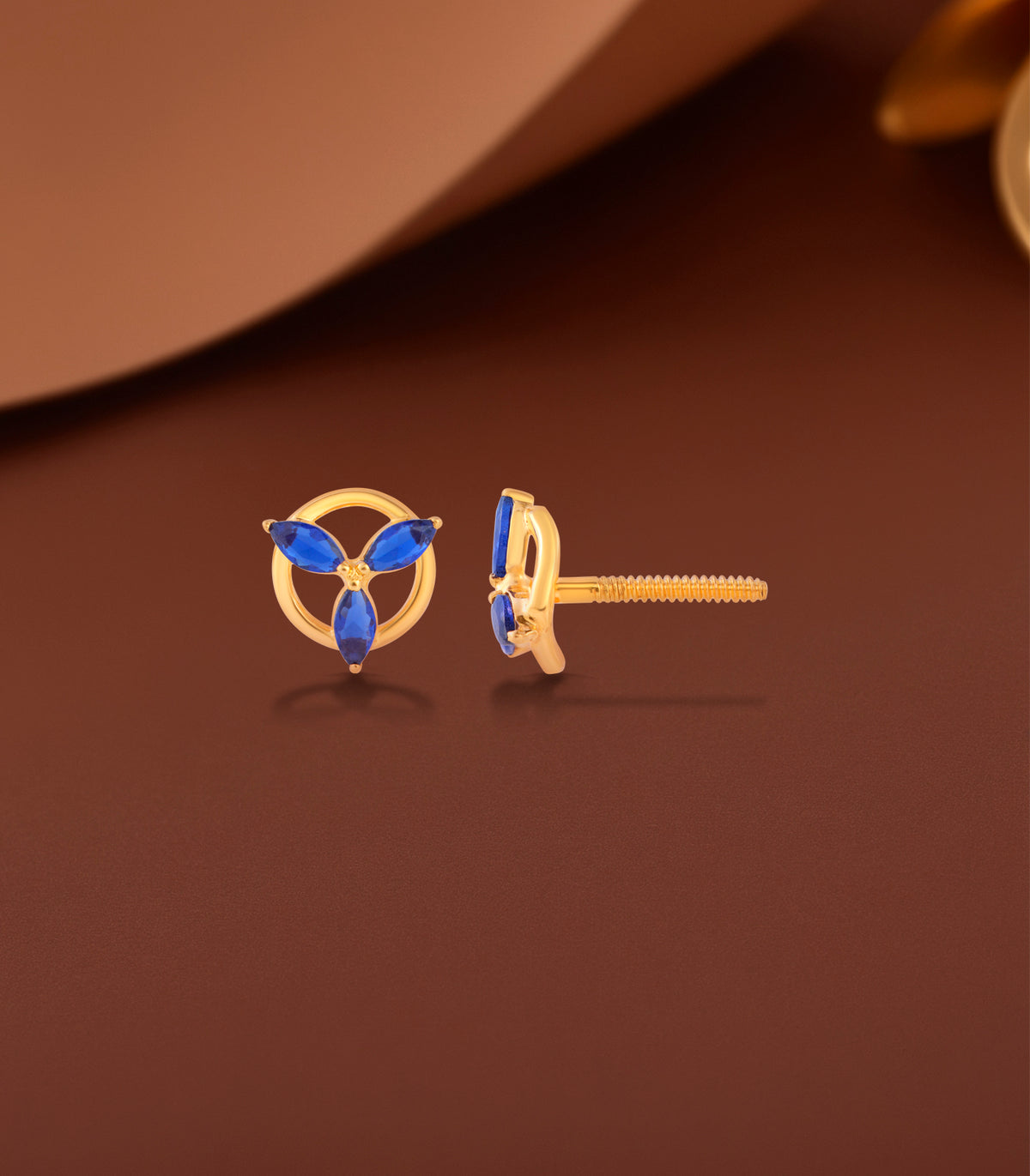 Material: Crafted with 22k gold featuring three deep blue gemstones arranged in a circular design.