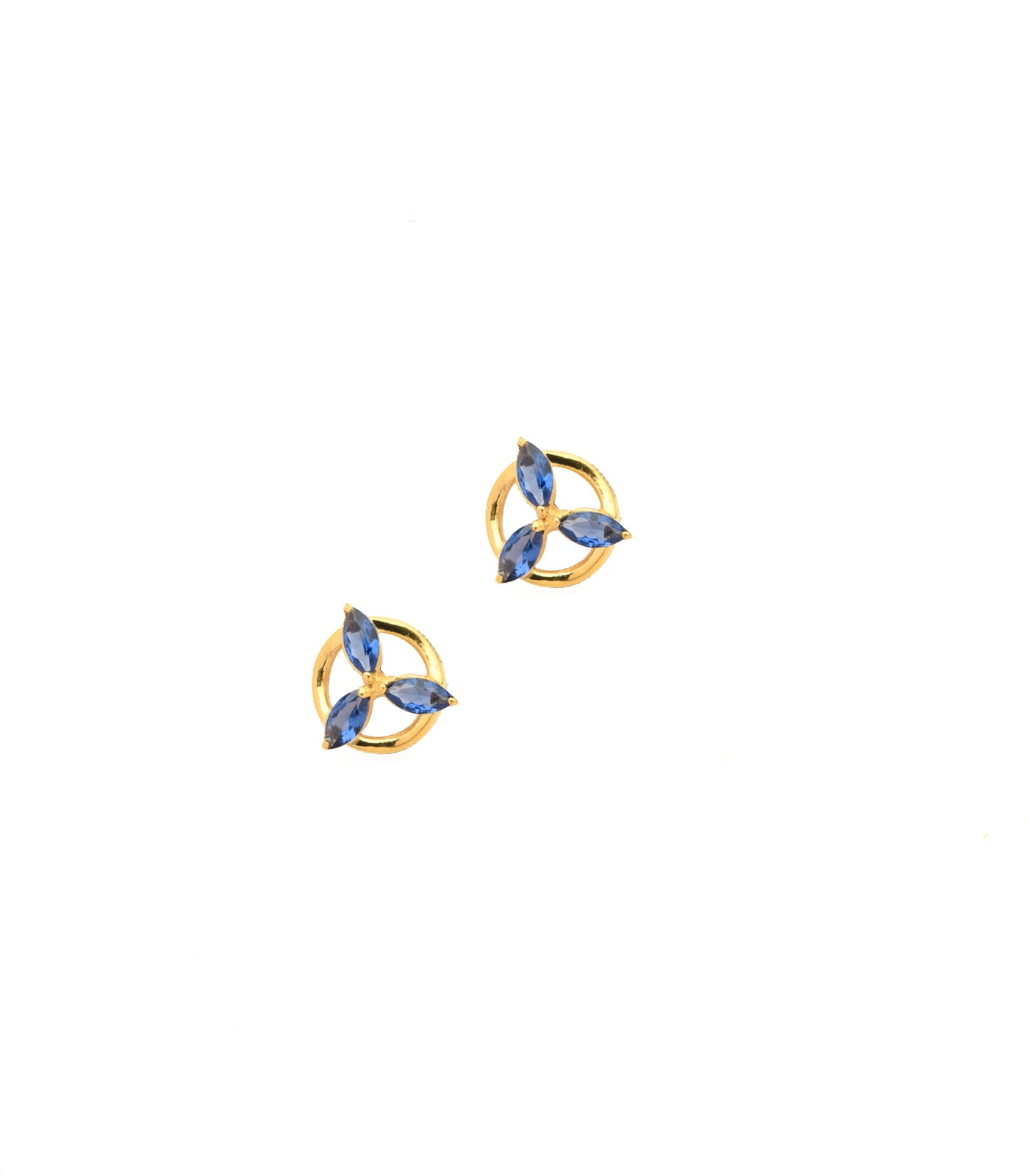 Design: Elegant circular frame with marquise-cut blue stones forming a stylish floral pattern. The intricate gold setting enhances the vibrancy of the blue stones.